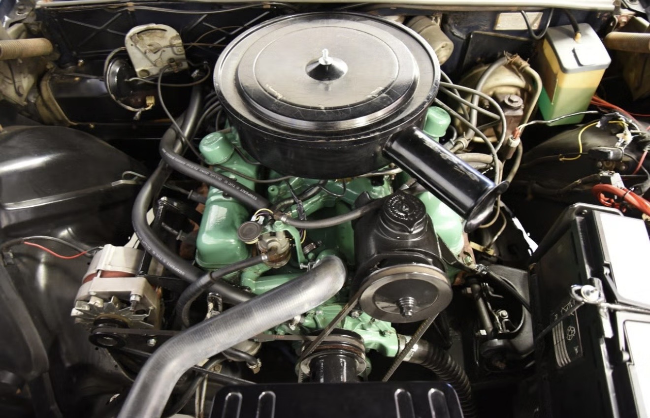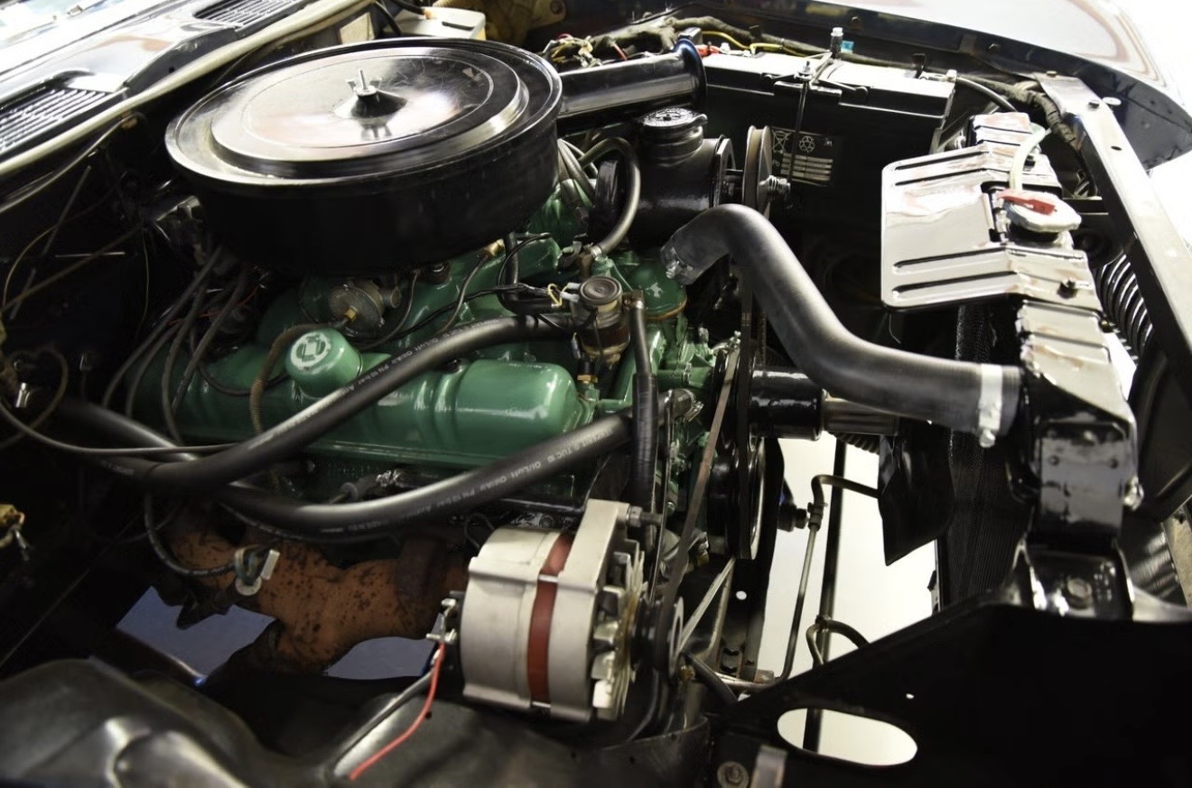 Pod kapotou velká V8 401 Nailhead, která je v dobré kondici, karburátor seřízen, motor zkontrolován, běží hladce. S motorem je spojen dvoustupňový automat DynaFlow. Electra má posilovač řízení i brzd, elektrická okna, přední lavici a elektricky skládanou střechu. Elektricka plátěná střecha je ve velmi dobrém stavu, k vozu je navíc kryt složené střechy.